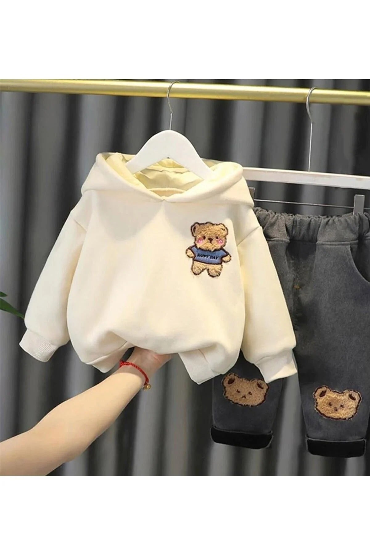 Toy Ayı Görselli Kapşonlu Zarif Bebek Takım